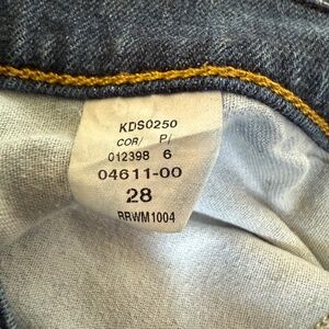 Small side tab logo. Large logo on back waist band and large embroidered R’s on back pockets
