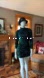 This lovely has three-quarter links sleeves with a high neckline that snaps at the back and circular opening with a low back.. there is a zipper and a length would be mini