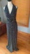 Beautiful plunging crisscross front with halter neckline. Cinched in waistband with silver buckle embellishment. Very ample skirt, so there is movement when you walk. Fabric is substantial so it drapes beautifully. You can throw it in your luggage and it won’t wrinkle.