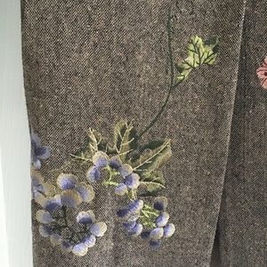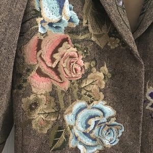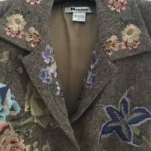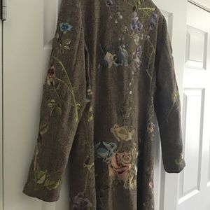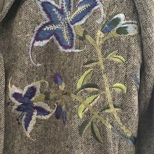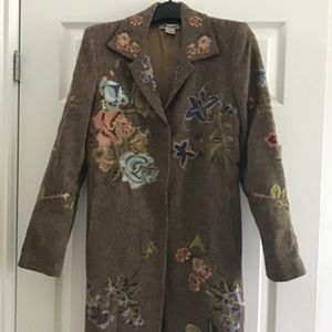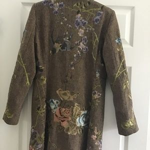 Fabulous light brown textured coat with beautiful embroidery size 6