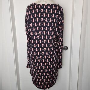 Grey with colorful aviary bird print and black with pink hearts & cats, soft poly spandex blend, Excellent Condition, Size XL, Pit-23, Sleeve-26, Length-33.