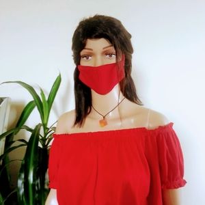 Red double ply face mask for maximum protection from COVID 19. It can complement your wardrobe when worn indoors or outdoors. Masks will be needed as an added protection beyond pandemic so wear it as a fashion statement.