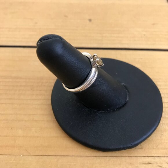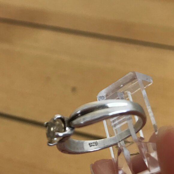Vintage 90s silver ring has a small round faceted citrine gemstone set in the center of ring. Inside of band is stamped "925". US ring size 6.5. Good pre-owned condition, silver has some toning from age (can be polished).