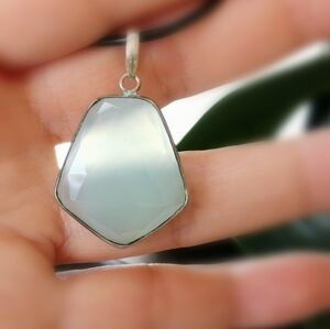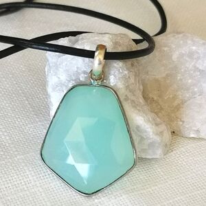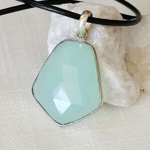 Faceted aqua chalcedony gemstone pendant necklace 🆕