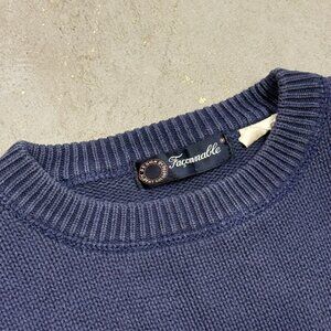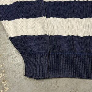 Faconnable Knit Sweater Striped Crewneck 100% Cotton Blue Pullover Small