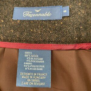 Features: zip double hook & bar inner button closure, tweed, cuffed, lined to knee, straight leg, side pockets, 1 back pouch pocket, wool, designed in France, warm, neutral, stylish, great paired with your fav sweater