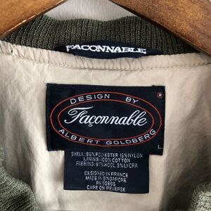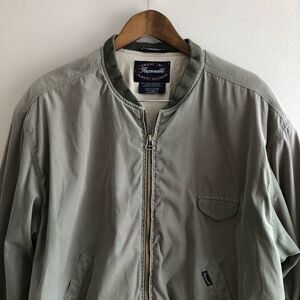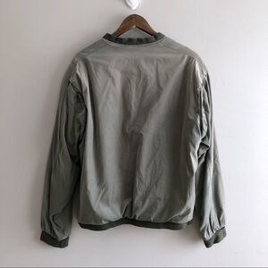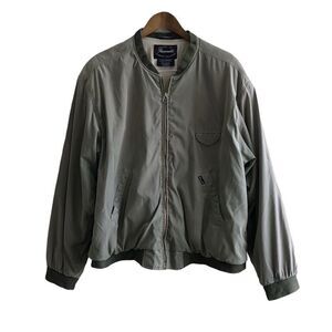 Faconnable by Albert Goldberg vintage casual style soft comfy and stretchy long sleeve zippered zip up bomber jacket coat top with wool blend ribbing. Water repellent fabric. Green in colour. Size L / large. Good pre loved condition / GUC with flaws: light fading near shoulders + small tearing on sleeve cuffs - pictured. Approx measurements armpit to armpit: 24“ length 26“ sleeve: 29“ Offers welcome. Ships in 1-2 business days.