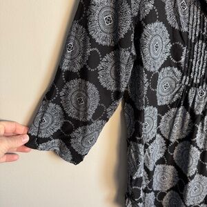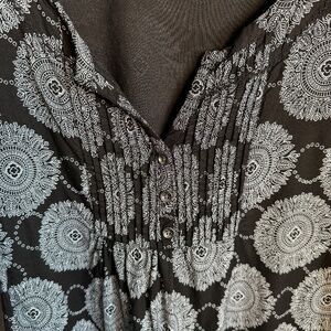 Faded Glory Women's Rayon 3/4 Sleeve 1/4 Button V-Neck Geometric Print Blouse L