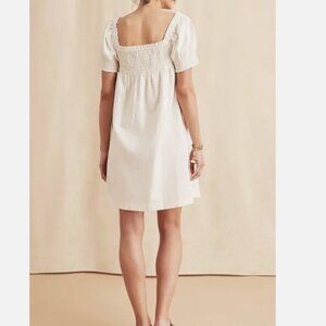 Faherty White Organic Cotton Puff Sleeve Babydoll Dress, Size Large