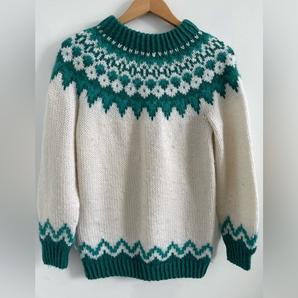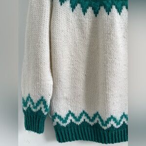 Stay cozy and stylish with this elegant green and white sweater. Perfect for any occasion.