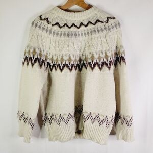 Stay warm and timelessly stylish with this cozy cream sweater featuring a beautiful fairisle patterned design. Perfect for chilly weather comfy wear. GUC