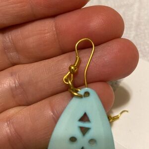 Fairtrade Turquoise Earrings Beachy Boho Gold Tone Hooks