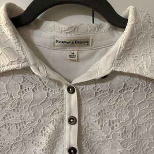 Pristine Condition Fairway & Greene White Floral Lace Polo Shirt