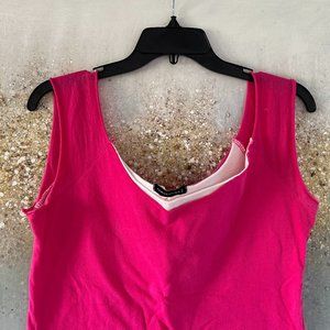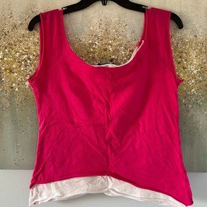 Size: Medium. Color: Pink & White. Scoop neck. Can be worn off-the-shoulder or as a classic tank top.