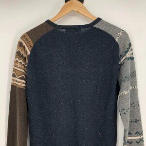 Fairwhale Navy Speckled crewneck sweater contrast stripe grey brown sleeves Med