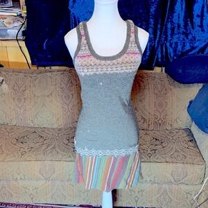 Fairy Grunge Wool BOHO Multicolor Knit Mni Dress Tunic Layering Warm Fall Medium