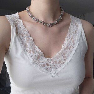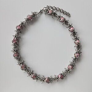 Fairy princess pink barbwire chain mail necklace with a small silver chain