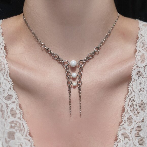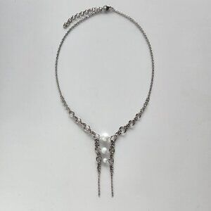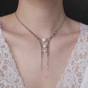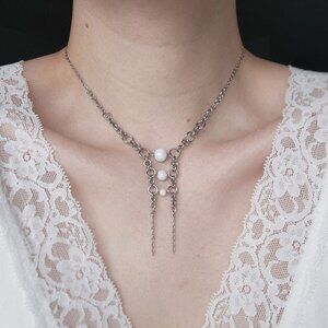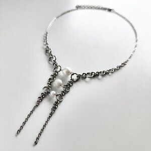 Fairy whimsical gothic victorian white pearls and silver double rosary necklace