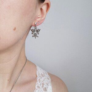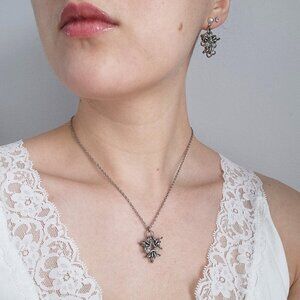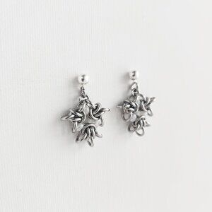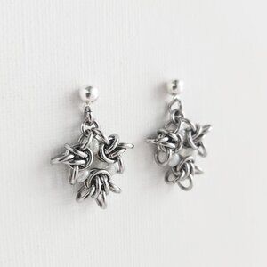 Fairy white pearl silver flower earrings ✦ chainmaille star-shaped earrings ✦