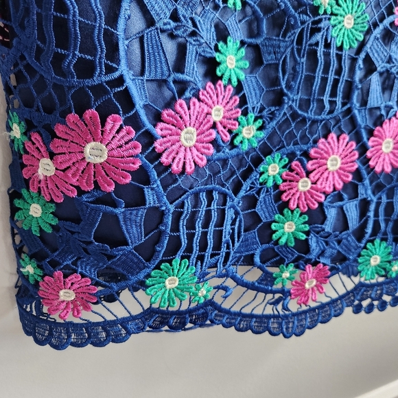 David Meister Lace Floral Midi Short Sleeve Dress Sz Medium