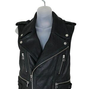 Faith Connexion Black Lamb Leather Biker Vest Size 36 (S)