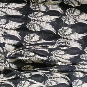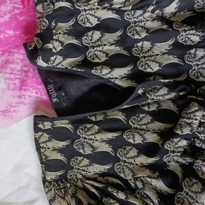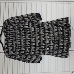 Stylish mini dress with a unique pattern. Features a scoop neckline and three-quarter sleeves. Perfect for any occasion.