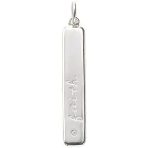 Sterling silver charm with the word faith engraved in script and a mini stone. Chain not included.