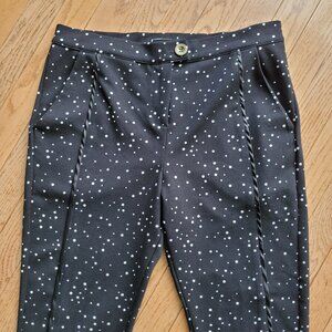 Faith and Joy Black Polka Dot Dress Pants Piping Front Stretch M