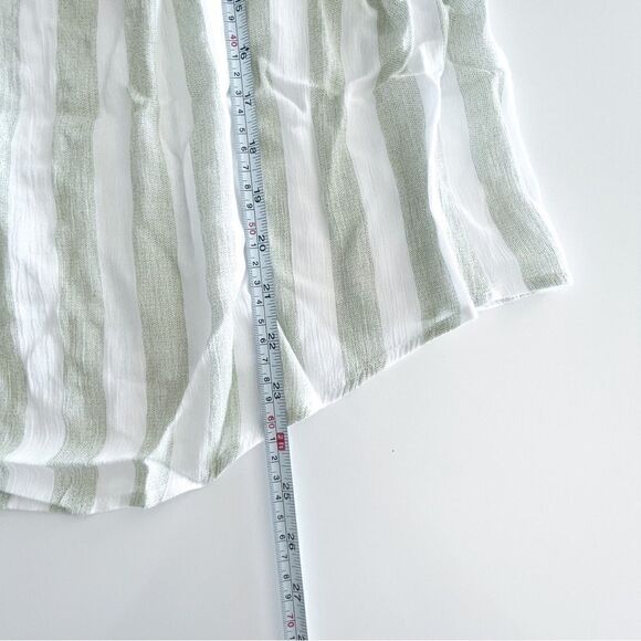 Faith and Joy Stripes Top Green White 3/4 Sleeves Chest Pockets Women's S Rayon. Very good used condition. Please see photos for approximate measurements.