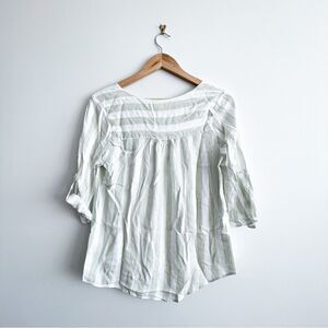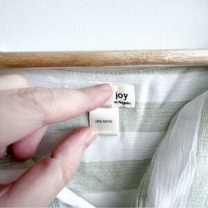 Faith and Joy Stripes Top Green White 3/4 Sleeves Chest Pockets Women's S Rayon