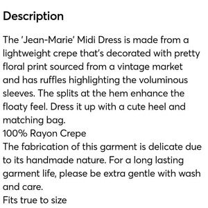 Faithfull The Brand Jean-Marie Puff Sleeve Feminine Midi Women’s Dress Sz Small.