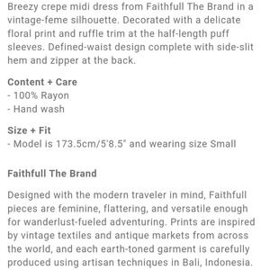 Faithfull The Brand Jean-Marie Puff Sleeve Feminine Midi Women’s Dress Sz Small.