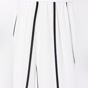 • Hidden back zipper; wide-leg pant with vertical stripes