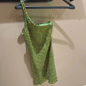 A flattering one shoulder silhouette the Mer Mini Dress is designed to transport you to all your vacation occasions. This hand-printed mini dress is fully shirred for comfort and finished with a small frill detail at the hem.