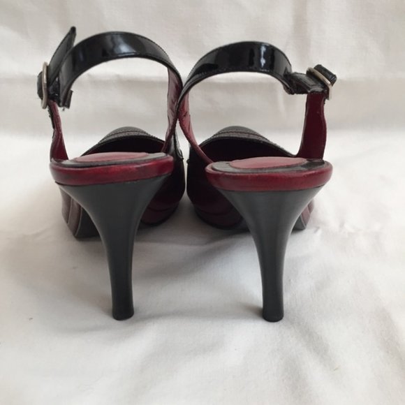 Classic Falchi red leather & black patent sling back pumps with platform. These are super comfortable to wear!