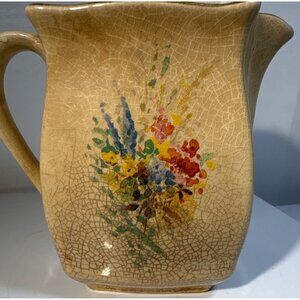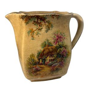 Falcon Ware Pitcher Creamer Vintage English Cottage Scene & Floral Crackle