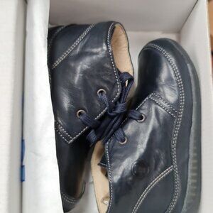 Soft leather Falcotto first steps shoes with contrasting stitching and anatomic transpiring ultra flexible bottoms.