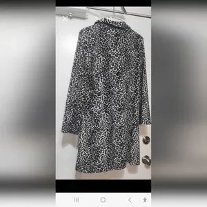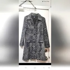 Black and white print coat. Lined, faux pockets Soft material