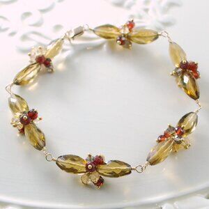Fall Gemstone Bracelet with Quartz and Garnets in Gold