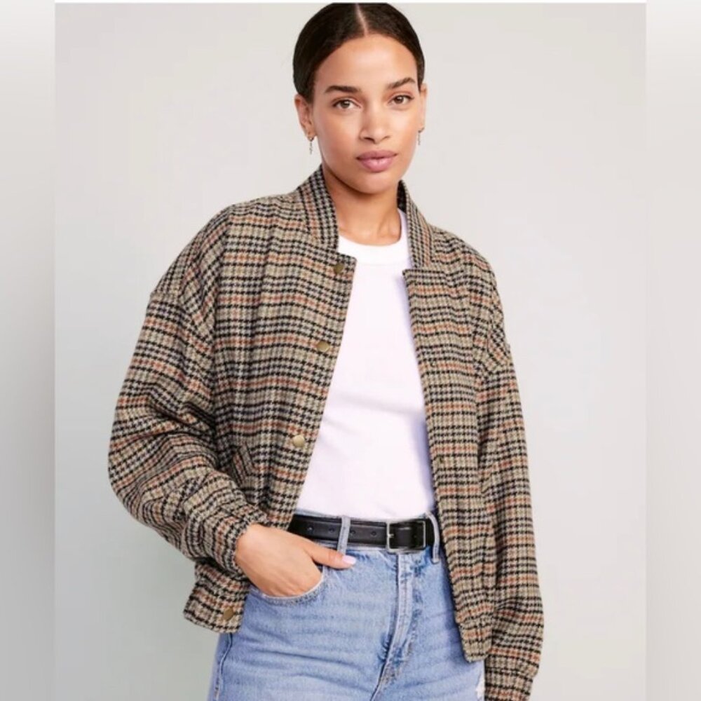 Cozy, fall vibes, multi colour, bomber jacket with buttons and pockets