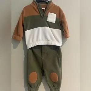 Adorable kids matching set featuring a stylish green, brown, and white design. Perfect for playful days and cozy comfort.
