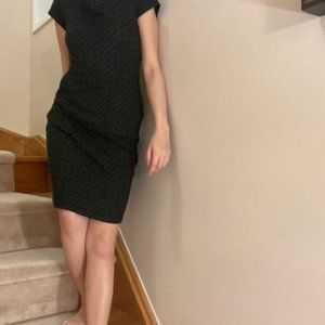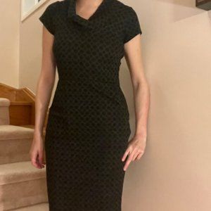 slightly above knee length, sleevelesss cut - goes well with layering in winter with blazer/cardigan and winter coat