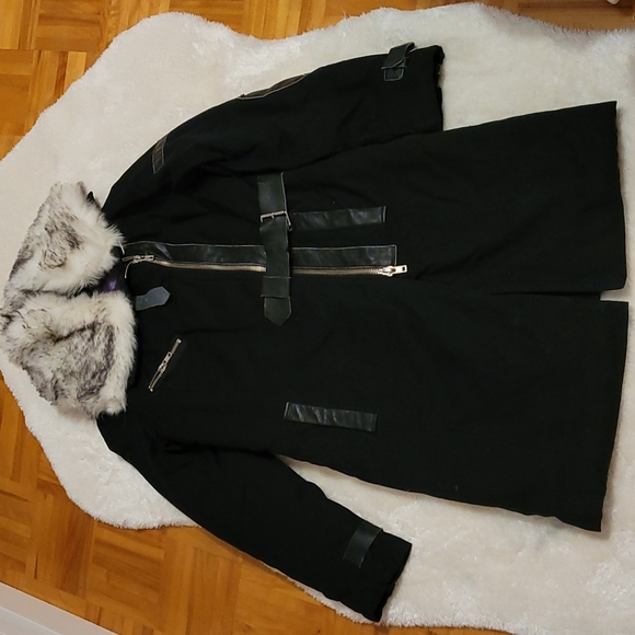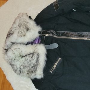 Cool jacket with removable fake fur and leather details! Bought it at a manufacture, there's no label, so no label or fabric detail, 3/4 jacket, it must be a small/medium jacket. Thanks for visiting π₯°β€π€!