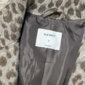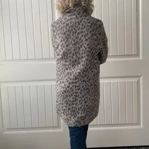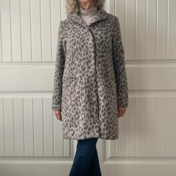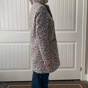 Zipper front coat/jacket with interesting Leopard print in soft grey and brown.