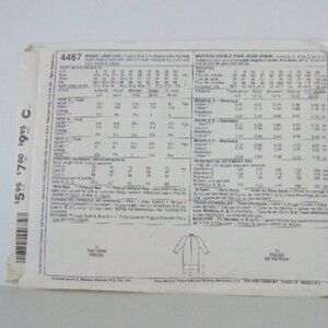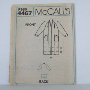 Vintage Easy McCall's uncut sewing pattern 4467 from The Woman's Day Collection. Printed in 1989 in the USA. Ladies lined coat with length variations. Size 14. The recommended fabrics include wool blends, heavyweight linen and velveteen.
