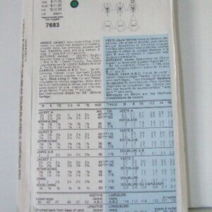 Uncut vintage Vogue sewing pattern 7683. Printed in 1989 in the USA. Loose fitting coat with length variations. Ladies size 12, 14, 16. The recommended fabrics include twill, denim, and flannel.