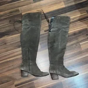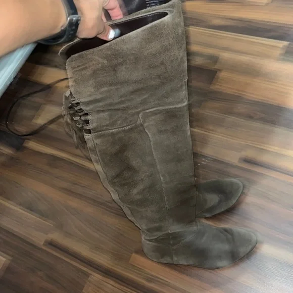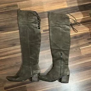 They’re definitely preloved and got some snow stains that could easily be removed but otherwise they’re in good condition. Love these boots In the fall. Really fashionable and play up any outfit. Tie up laces in back 🤎 dark tan colour