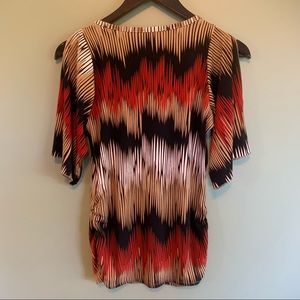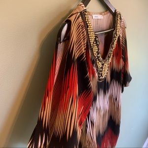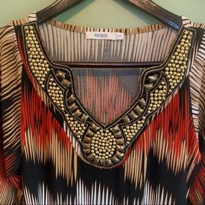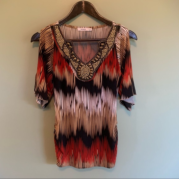 Features peek a boo shoulders and fun brass colours metal beads and studs. Small Fitted Good Condition