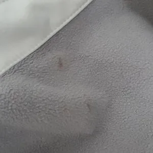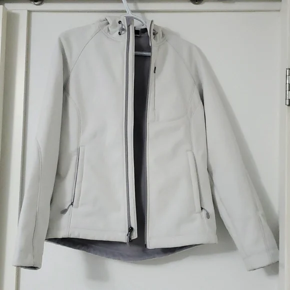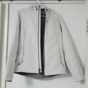 Rain Coat warm fleece lined. White outside Grey inside , small stain in hood.