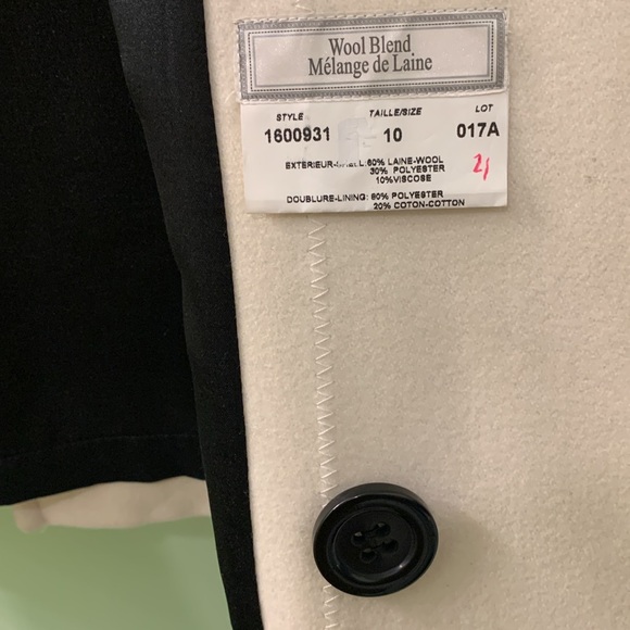 Very good used jacket. There is an indentation from a button as shown in picture 3. Colour in picture isn’t the best. It’s a cream colour.